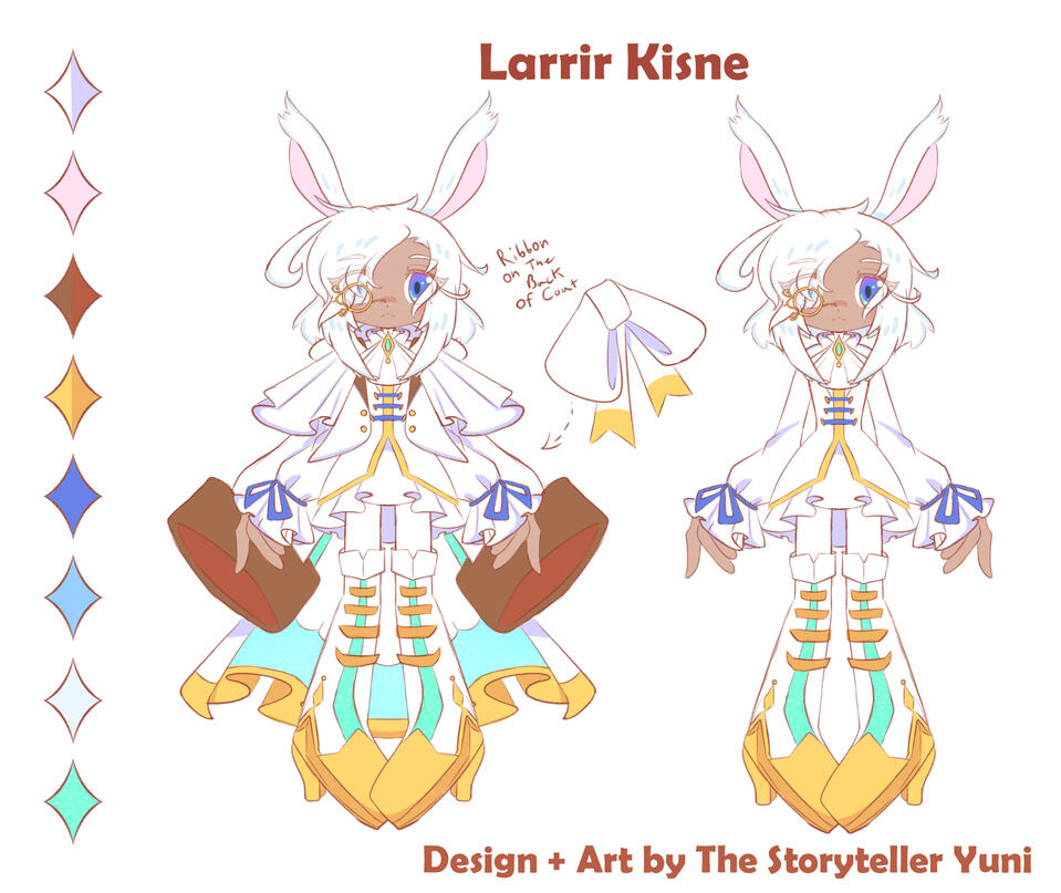 A young Viera who came to Eorzea as a tender babe. He may not have been born here but he has lived here most of his life. Spends whatever time he can learning and exploring the land ether by doing request for others, studying magic from tomes, or by following his curiosity and doing whatever he can find at the adventurers guild.Though as the older brother he is, he is often traveling with his younger sibling, Ignar, who is quite a skilled fighter for his young age and is a helpful sidekick on quest and can be just as curious if not more then his brother.----------------------------------------------------------------------------------------------------Larrir is also the retainer for the mysterious V, a person who's life and origin is as unknown as he is. He seems harmless as he is just a normal employer of Larrir's but some question why he favorites the poor boy...